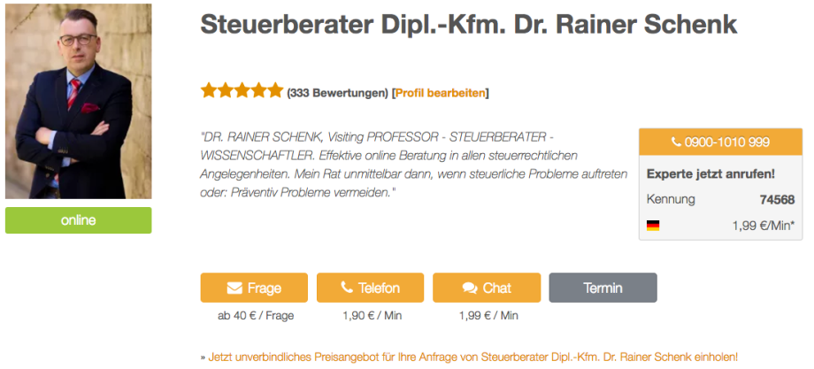 Wenn Sie aber sofort steuerlichen Rat benötigen, dann können Sie mich unter der folgenden Rufnummer erreichen: